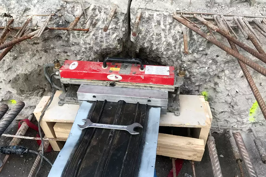 Stöße sind problemlos mit Stumpfstoß verschweißbar. Die Einbindung der Spezialfugenbänder in die Bodenplatte (2,5 - 4,0 cm = Betonabdeckung) hat den Vorteil, dass die durchgehende Bewehrung weder ausgewechselt noch durchtrennt werden muss.